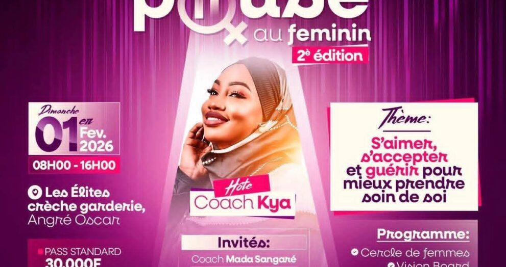 Nous vous invitons à la deuxième édition de la pause au féminin, c’est une activité exclusivement féminine qui aura lieu ce dimanche 1er février 2026 de 08h à 16h à l’espace Les Élites crèche garderie sise à Angré Oscar. Cette activité est pensée et organisée par la coach certifiée Rokyatou Cissé Touré et s’articule autour […]