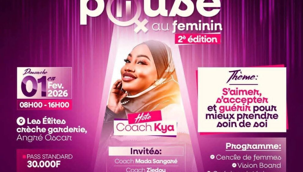 Nous vous invitons à la deuxième édition de la pause au féminin, c’est une activité exclusivement féminine qui aura lieu ce dimanche 1er février 2026 de 08h à 16h à l’espace Les Élites crèche garderie sise à Angré Oscar.